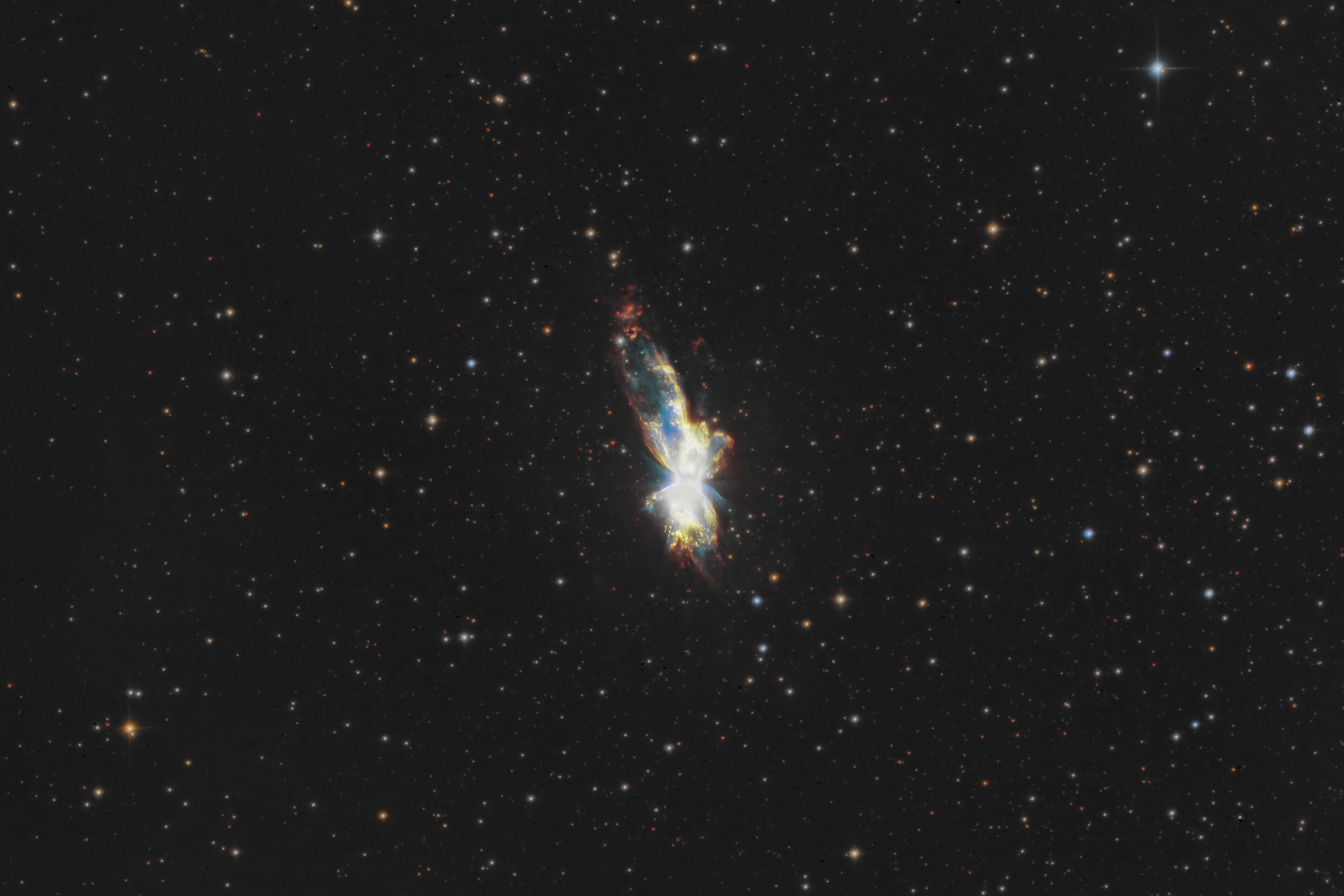 NGC 6302 (aussi appelée la nébuleuse de l'Insecte, nébuleuse du Papillon, ou Caldwell 69) est une nébuleuse planétaire bipolaire située dans la constellation du Scorpion. NGC 6302 a été découverte par l'astronome américain Edward Emerson Barnard en 1880. Edward Barnard a découvert cette nébuleuse planétaire en 1880 avec son télescope de 5 pouces. Il a écrit à son sujet : « une petite nébuleuse vacillante pas très bien définie et légèrement allongée d'est en ouest ». C'était la première nébuleuse planétaire découverte par Barnard, mais cette découverte n'a été publiée qu'en 1884. Dans cette publication, Barnard a écrit que Lewis Swift l'avait observée avec un télescope de 16 pouces et qu'il avait rapporté qu'elle était triple et allongée. En 1892, Barnard a réalisé une observation détaillée de NGC 6302 avec le télescope de 36 pouces (90 cm) de l'observatoire Lick et il a produit un dessin de celle-ci.